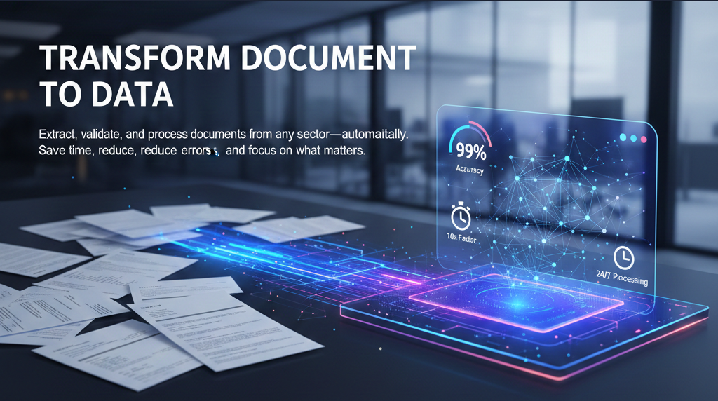 Extract, validate, and process documents from any sector—automatically. Save time, reduce errors, and focus on what matters.